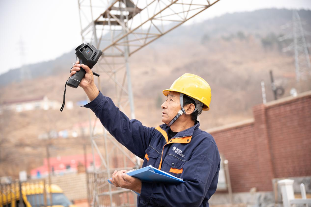 王杰在检查变电站设备。新华社发